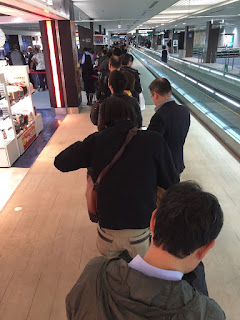 17時55分塔乗開始予定。しかし、香港が悪天候により、同地への着陸が混雑していて、出発機に待機命令が出ているとのこと。しばらく時間がかかるとのことで、ラウンジへ戻る。